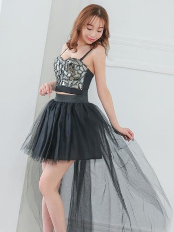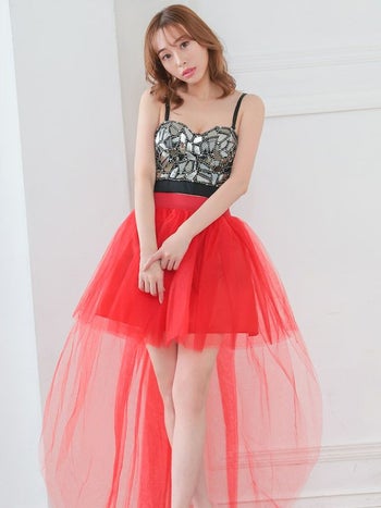 小物 ボリューム ロングテール 前ミニ パニエスカート