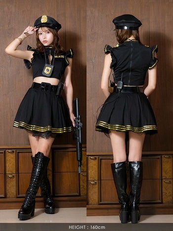 コスプレ ポリス へそ出し フレアスカート フリル バストジップ セパレート 衣装7点セット