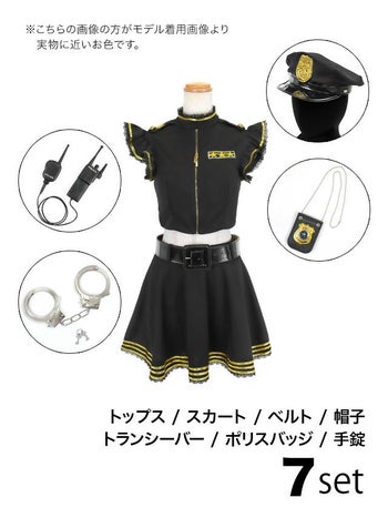 5. 【コスプレ】ポリス へそ出し フレアスカート フリル バストジップ セパレート 衣装7点セット[トップス/スカート/ベルト/帽子/トランシーバー/ポリスバッジ/手錠]