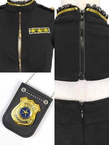 コスプレ ポリス へそ出し フレアスカート フリル バストジップ セパレート 衣装7点セットのスペック表