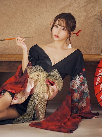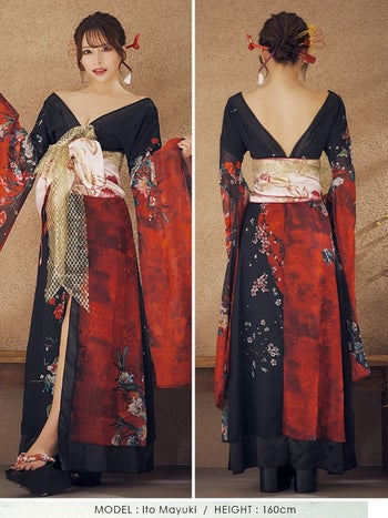 ブラック×レッドで妖艶に魅了する花魁ドレス♡