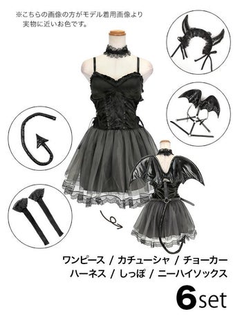 5. SALE【コスプレ】デビル 悪魔 ハーネス チュール フレアスカート ベロア レースアップ 衣装6点セット[ワンピース/カチューシャ/チョーカー/ハーネス/しっぽ/ニーハイソックス]