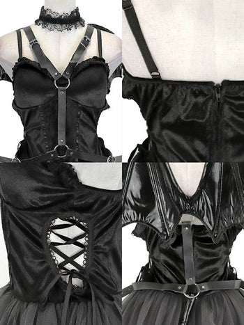 4. SALE【コスプレ】デビル 悪魔 ハーネス チュール フレアスカート ベロア レースアップ 衣装6点セット[ワンピース/カチューシャ/チョーカー/ハーネス/しっぽ/ニーハイソックス]