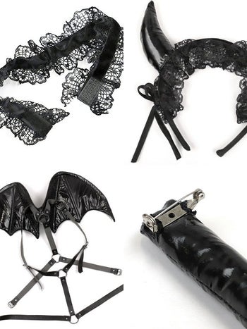 コスプレ デビル 悪魔 ハーネス チュール フレアスカート ベロア レースアップ 衣装6点セット
