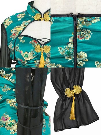 3. SALE【コスプレ】チャイナドレス 谷間 サイドレースアップ セクシー サテン 長袖 衣装5点セット[ジャケット/ワンピース/お団子カバー/ガーター/透明ストラップ]