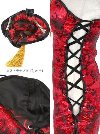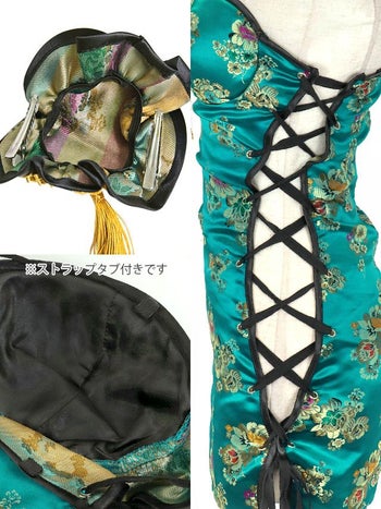 チャイナドレス 谷間 サイドレースアップ セクシー サテン 長袖 衣装5点セットのスペック表