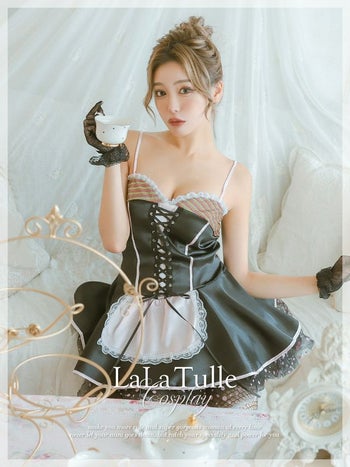 コスプレ レースアップ ドット柄 チュール インポート ウエイトレス 衣装2点セット