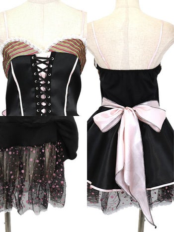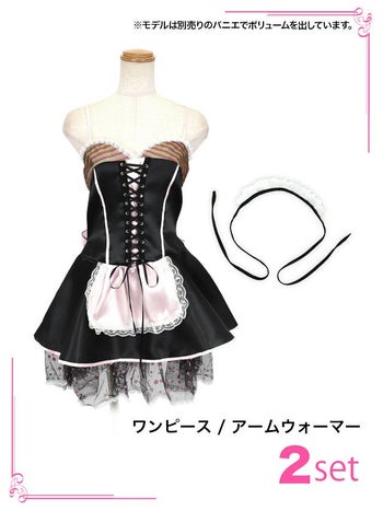 色移りの為、激安価格☆ 【コスプレ】[ワケありセール] レースアップ ドットチュール アメリカンインポート セクシーウェイトレス 衣装2点セット[ワンピース/アームウォーマー]