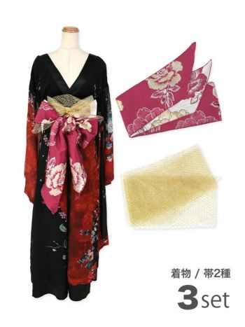 3. 【コスプレ】花魁 セクシー 和装 ドレス 衣装3点セット [着物ドレス/帯2種類]
