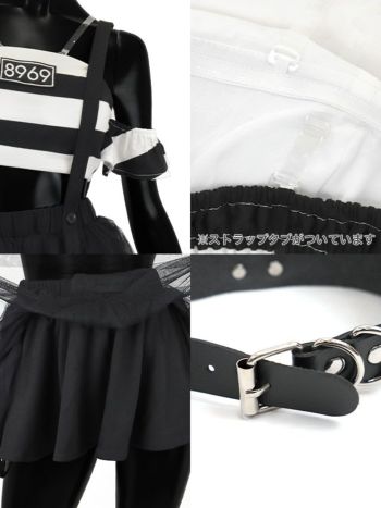 コスプレ オフショルダー チェーン サスペンダー へそ出し セクシー チュール フレア 囚人 衣装4点セットのスペック表