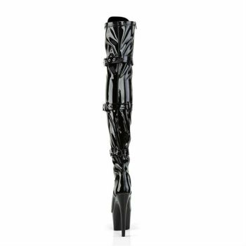 3. 【PLEASER/プリーザー】ベルト 編み上げ エナメル 厚底 ハイヒール ロング サイハイ ニーハイ ブーツ[ブラック][22.8cm~25.4cm][15cmヒール]