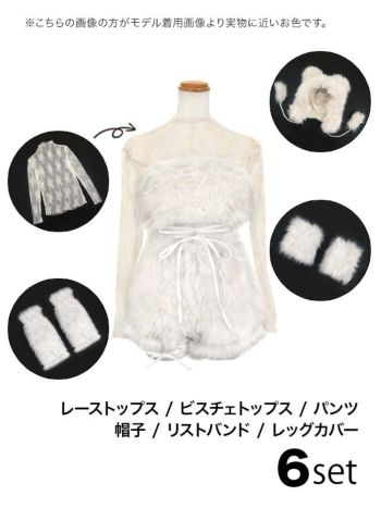 レーストップスや、帽子、レッグカバーなどを含む豪華6点セットで