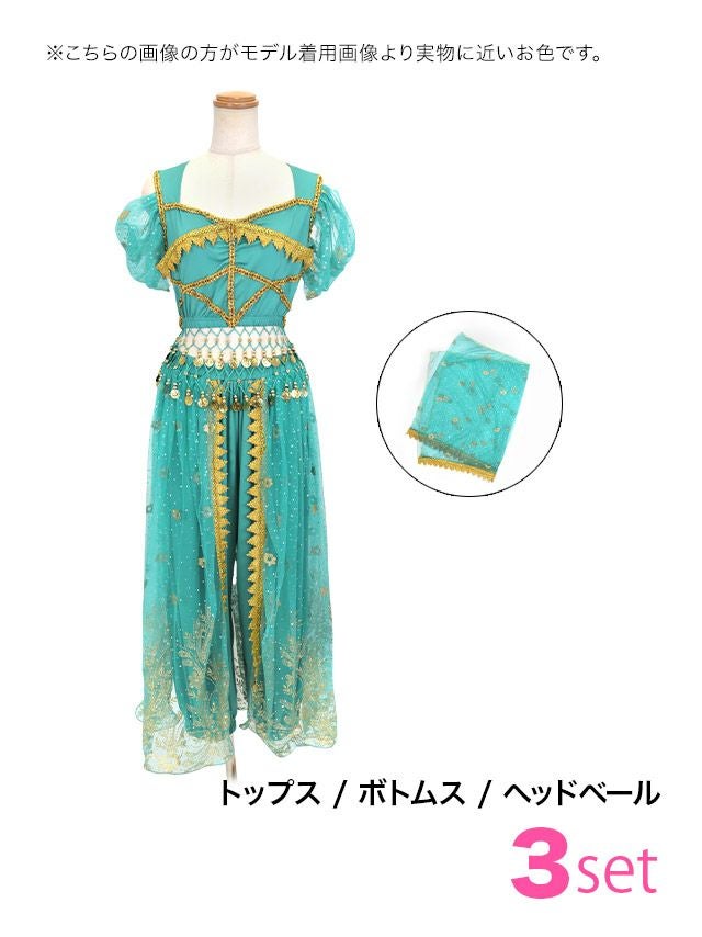 他の画像を見る スリットとお腹チラ見せが綺麗に魅せる♪ 【コスプレ】袖あり ロングパンツ スリット アラビアン衣装3点セット [トップス/パンツ/マスク] 即日発送 ¥ 8,690 税込 在庫切れ 詳細を見る お気に入りに登録する