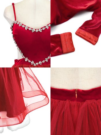 5. 【サンタコスプレ】2点セット ハートデザイン キラキラビジュー チュール フレアスカート 王道 サンタコスプレ (ワンピース+サンタ帽子)
