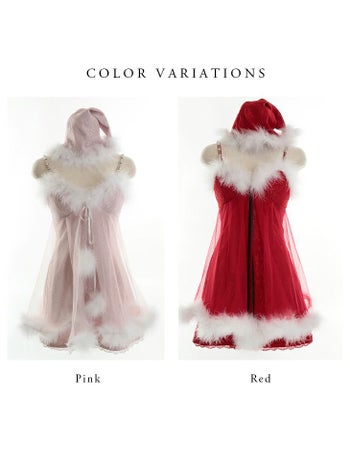 ふわふわのファーが可愛いベビードール風サンタドレス♪ 【サンタコスプレ】【ANIER./アニエル】ラグジュアリー チュール フレアミニ サンタコスドレス (anier4025)