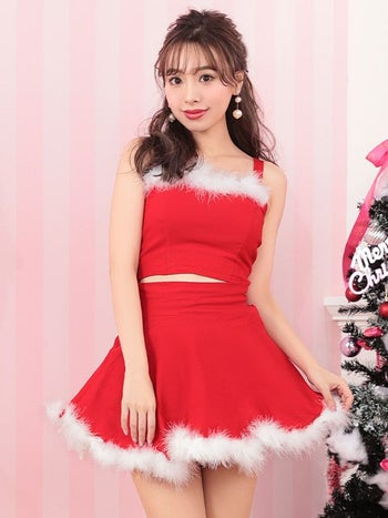 ふんわりとしたフェザーのアクセントが可愛いサンタコスチューム♪