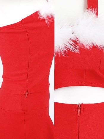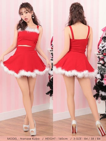 5. 【サンタコスプレ】2点セット セットアップ フェザー付き サンタコスプレ(トップス+スカート)