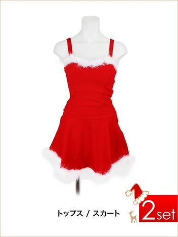 サンタコスプレ 衣装2点セット フェザー付き セットアップサンタコスのスペック表