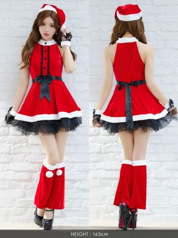 珍しいホルターネックデザインでガーリーなサンタコスチュームです♪