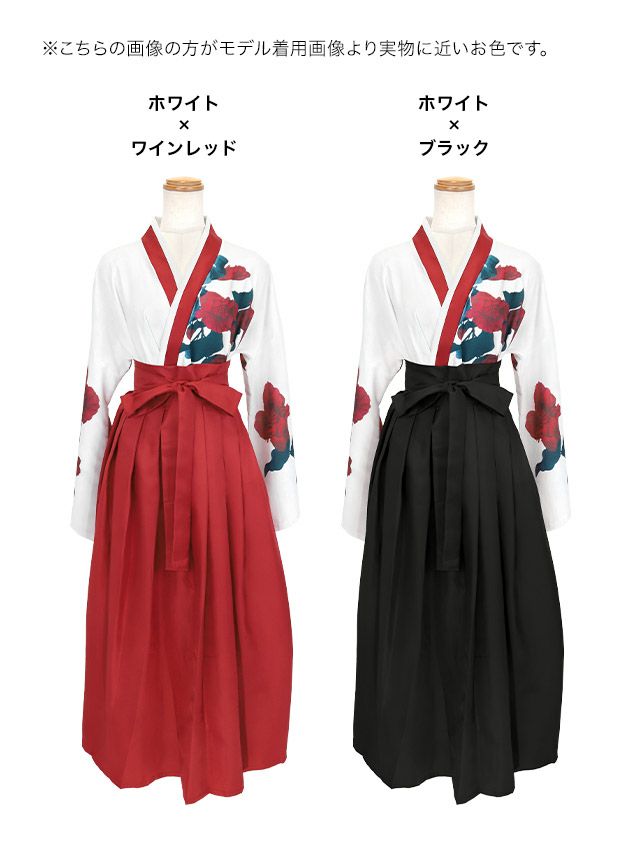 4. SALE【コスプレ】袴 個性的 ロング丈 レトロ 大正ロマン 和装 衣装3点セット [トップス/袴/リボン2本]