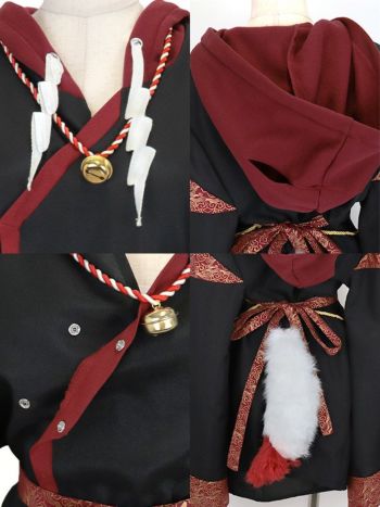 4. 【コスプレ】フード付き 長袖 稲荷様 和装 個性的 ふわふわ 白狐 アニマル 衣装5点セット[ヘアピン/パーカー/首飾り/腰紐/尻尾]