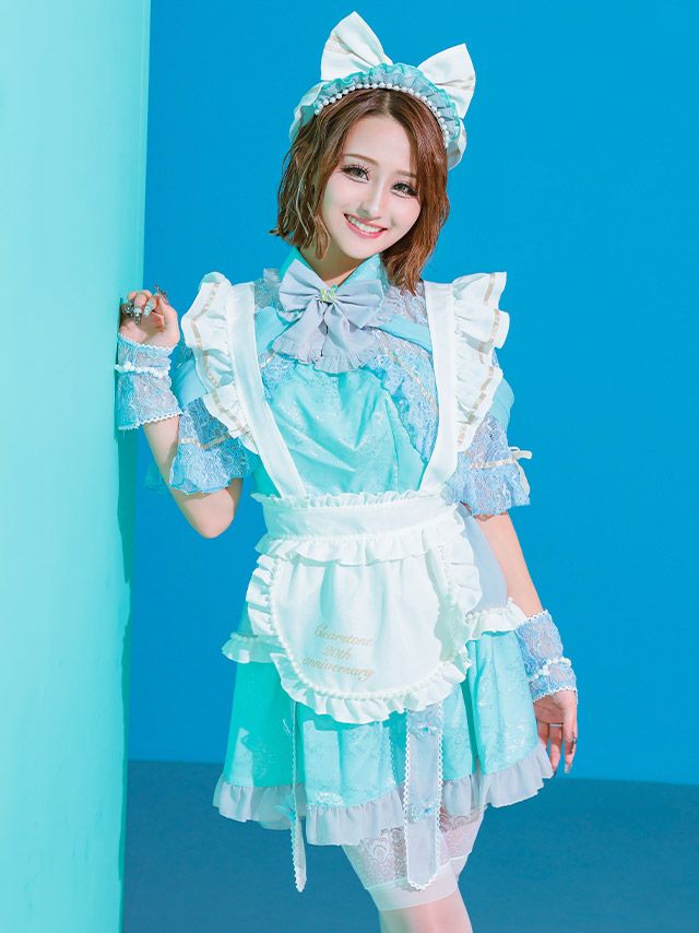 4. SALE【コスプレ】ロリータ風 ビッグリボン ラブリー フレアスカート ガーリー メイド 衣装6点セット[ケープ/ワンピース/エプロン/カチューシャ/透明ストラップ/グローブ]
