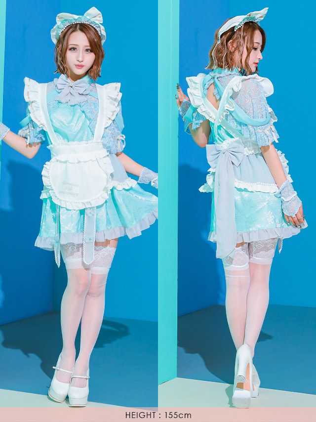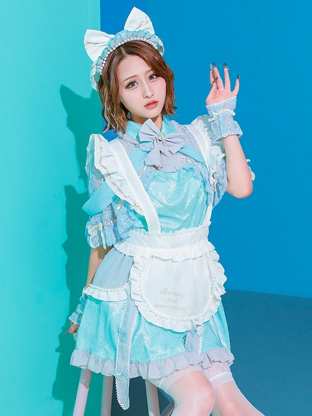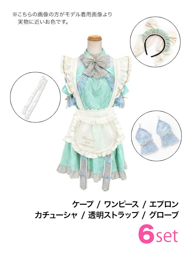 5. SALE【コスプレ】ロリータ風 ビッグリボン ラブリー フレアスカート ガーリー メイド 衣装6点セット[ケープ/ワンピース/エプロン/カチューシャ/透明ストラップ/グローブ]