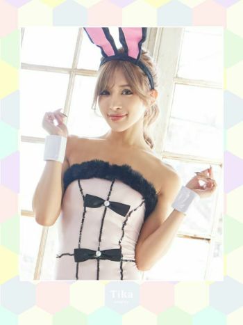 3. SALE【コスプレ】パールリボンファー付きハイレグセクシーバニー4点set[オールインワン+カチューシャ+リストバンド+ニーハイソックス]