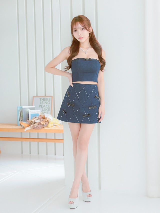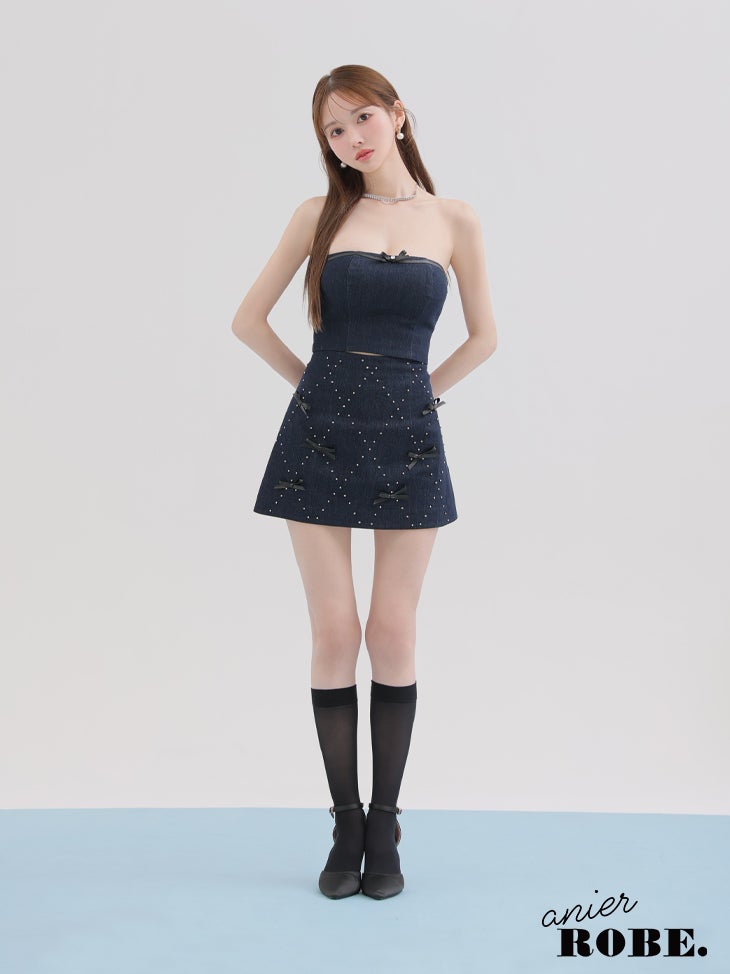 他の画像を見る XSあり!スタイルアップも叶うデザイン♡ 【ANIER./アニエル】ベアトップ デニム レザーリボン ビジュー セットアップ ガーリー フレアミニドレス (anier4048) ¥ 28,380 税込 詳細を見る お気に入りに登録する