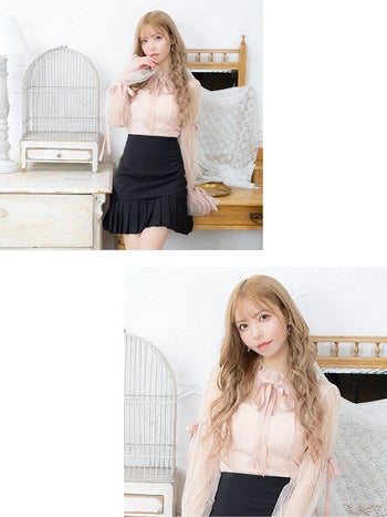 レーストップスとミニ丈のプリーツスカートが