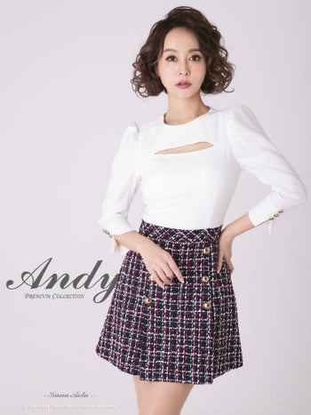 キャバドレス ワンピース Andy アンディ チェック柄 ツイード ガーリー 袖あり フレアミニドレス