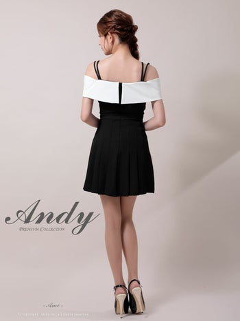 キャバドレス Andy リボン 肩あき バイカラー ボタン プリーツ フレアミニドレス