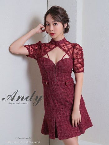 キャバドレス ミニドレス Andy アンディ フロントジップデザイン レース ツイード プリーツ 半袖 フレアミニドレスの詳細画像1