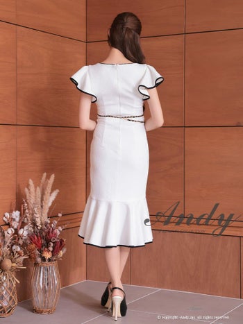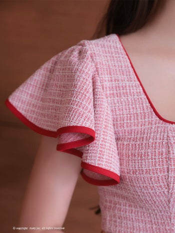 3. 【Andy/アンディ】ツイード リボン 半袖 ガーリー ジップデザイン 膝丈ドレス (anon2845)