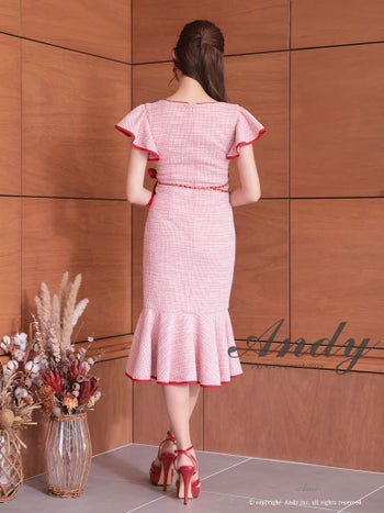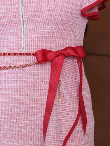 4. 【Andy/アンディ】ツイード リボン 半袖 ガーリー ジップデザイン 膝丈ドレス (anon2845)