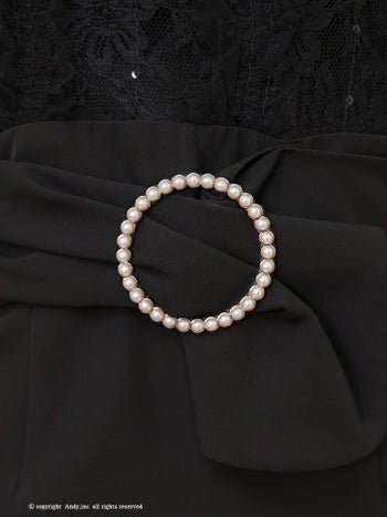 4. 【Andy/アンディ】アシンメトリー 裾フリル ベルト パールバックル レース ボトルネック 半袖 フレアミニドレス(anon2881)