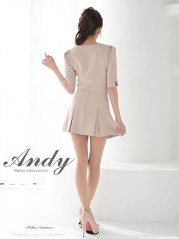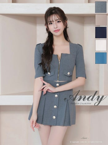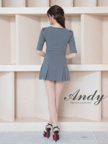 4. 【Andy/アンディ】スクエアネック 袖あり セットアップ ジップデザイン 飾りボタン 飾りポケット フレアミニドレス(anon2906)