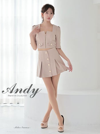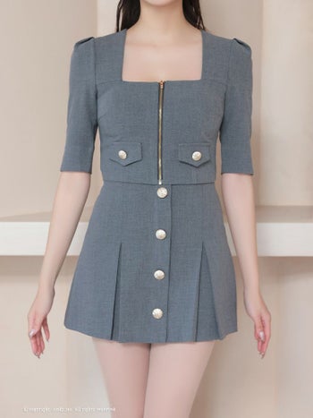 3. 【Andy/アンディ】スクエアネック 袖あり セットアップ ジップデザイン 飾りボタン 飾りポケット フレアミニドレス(anon2906)