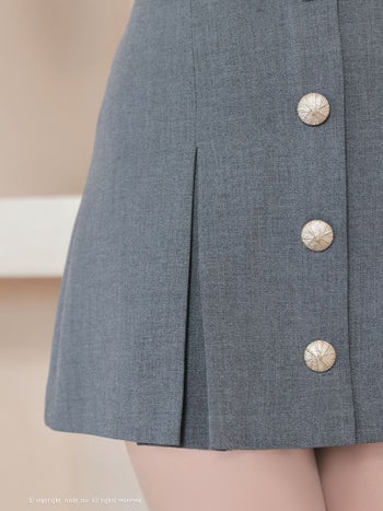 スクエアネック 袖あり セットアップ ジップデザイン 飾りボタン 飾りポケット フレアミニドレスのメイン画像5