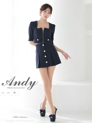 キャバドレス フレアミニドレス Andy アンディ スクエアネック 袖あり セットアップ ジップデザイン 飾りボタン 飾りポケット