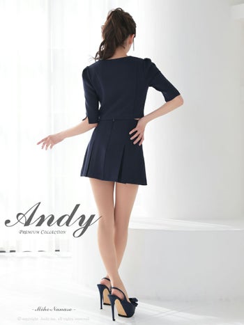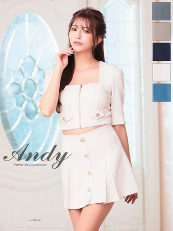 キャバドレス フレアミニドレス Andy アンディ ジップデザイン スクエアネック 袖あり セットアップ 飾りボタン 飾りポケット