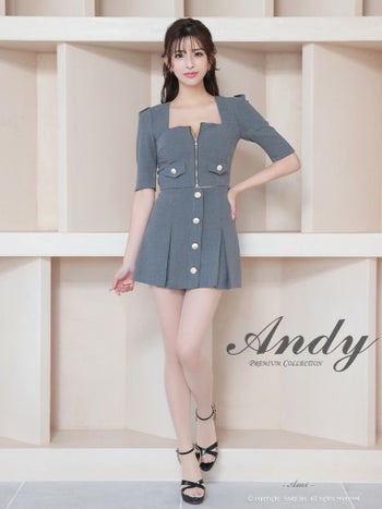 4. 【Andy/アンディ】ジップデザイン スクエアネック 袖あり セットアップ 飾りボタン 飾りポケット フレアミニドレス(anon2906)