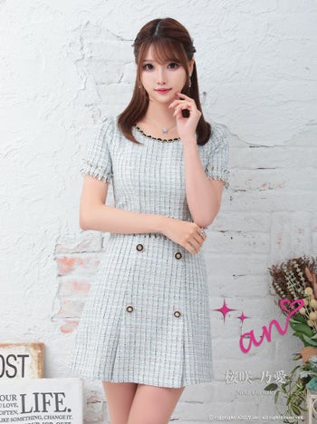 キャバドレス フリルミニドレス an アン チェーン ツイード 半袖 飾りボタン プリーツ