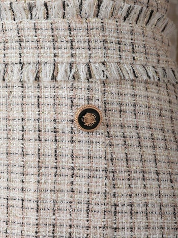 チェーン ツイード 半袖 飾りボタン プリーツ フリルミニドレスの詳細画像2