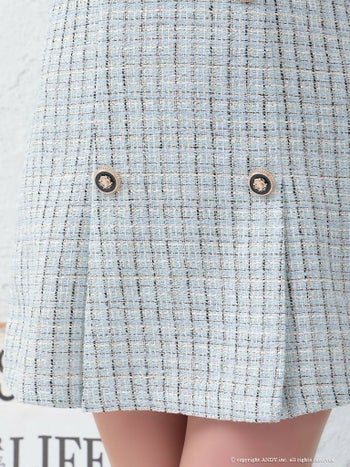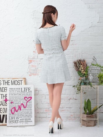 4. 【an/アン】チェーン ツイード 半袖 飾りボタン プリーツ フリルミニドレス(aoc3355)