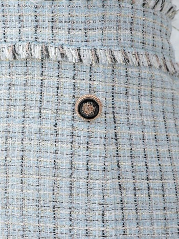 チェーン ツイード 半袖 飾りボタン プリーツ フリルミニドレスの詳細画像1