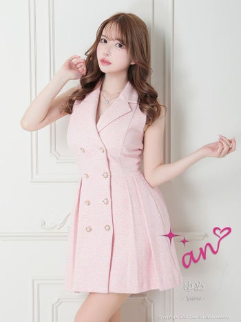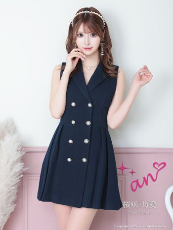 キャバドレス ミニドレス an アン ジャケット風 プリーツ パールボタン Aライン 襟付き ガーリー
