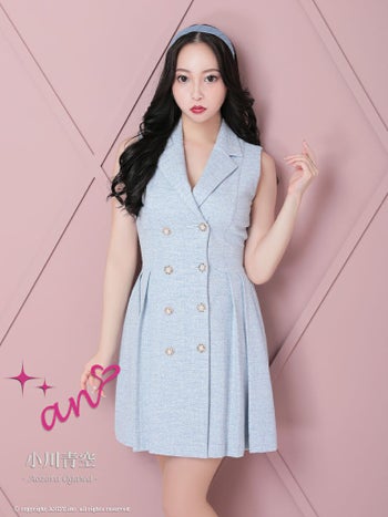 キャバドレス ミニドレス an アン ジャケット風 プリーツ パールボタン Aライン 襟付き ガーリー フレアミニドレスの全身サイド画像1