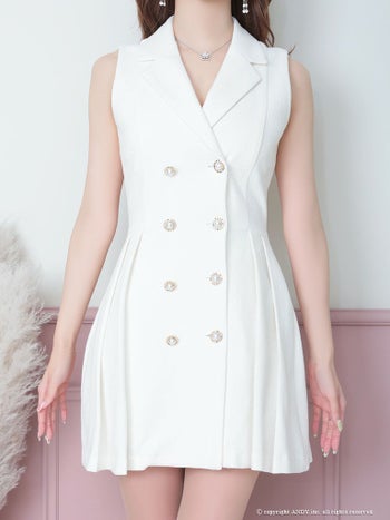 キャバドレス ミニドレス an アン ジャケット風 プリーツ パールボタン Aライン 襟付き ガーリー フレアミニドレスの全身フロント画像