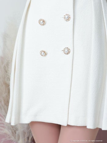 4. 【an/アン】ガーリー ジャケット風 パールボタン プリーツ Aライン 襟付き フレアミニドレス(aoc3389)
